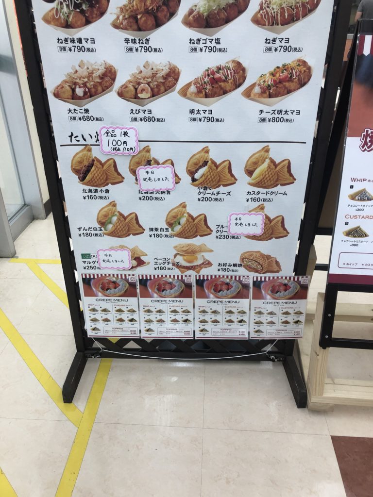 たこ焼き、クレープ、たい焼き屋、タピオカ、かき氷…。なんでもある。近所だし今買わなくてもいいかなと思ったまま時が過ぎていました…。