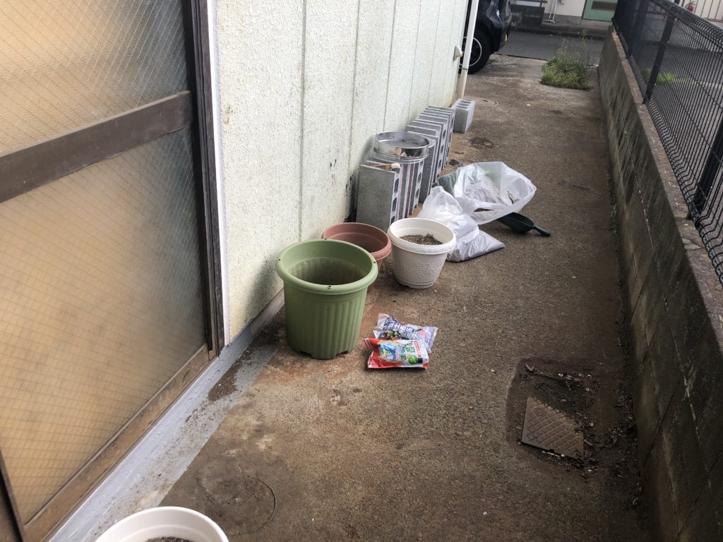 スタジオハアスには入口の横にちょっとしたスペースがあります。ここを借りる前は自動車整備工場だったそうなので資材を置いたりするところだったスペースです。ここでスプレー作業をしたり色々使い道があるなあって感じだったのですが今のところ誰も使ってないので野菜を栽培することにしました。