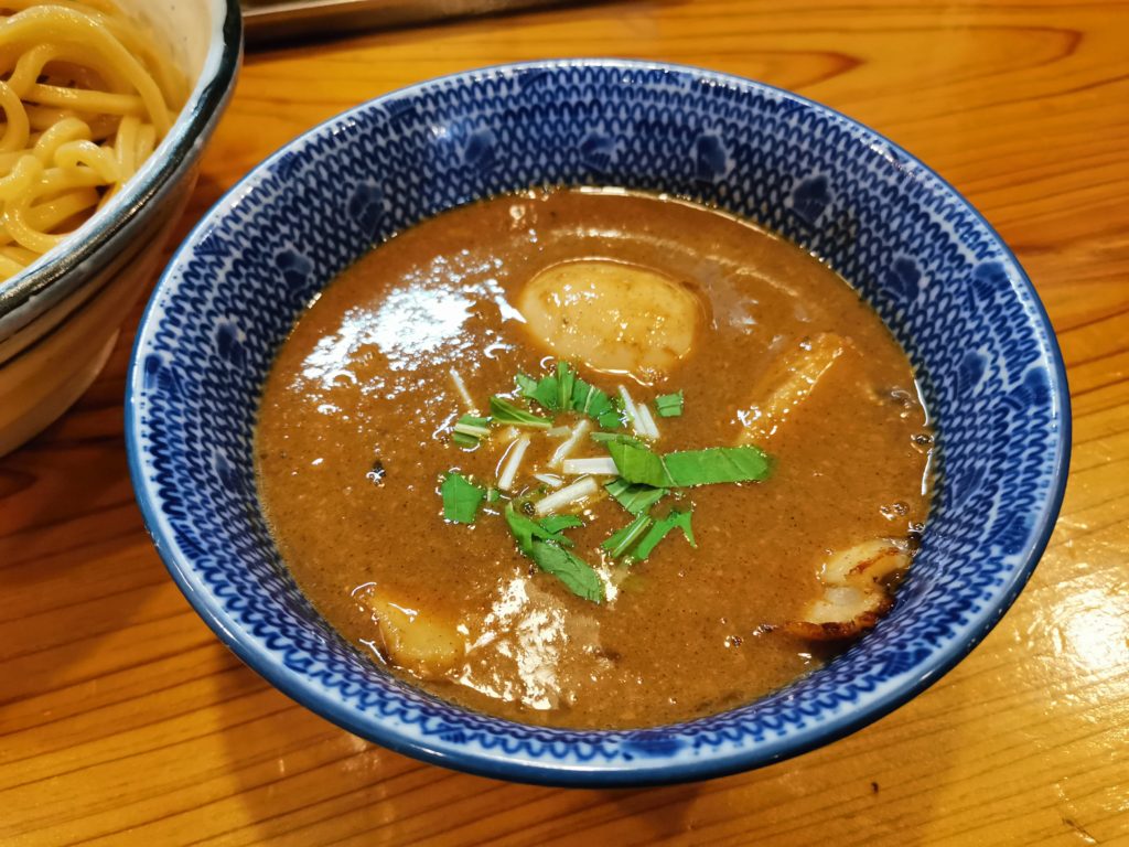 魚介系の濃厚スープのつけめんになります。まず、スープの濃厚さに注目です。魚介の旨味が凝縮されたスープは、とてもコクがあり、とろみがあるので麺によく絡みます。筆者はつけめんのスープはどろどろ派なのですが、なかなか出会えないと思った矢先、海心さんに出会ってしまったわけです。