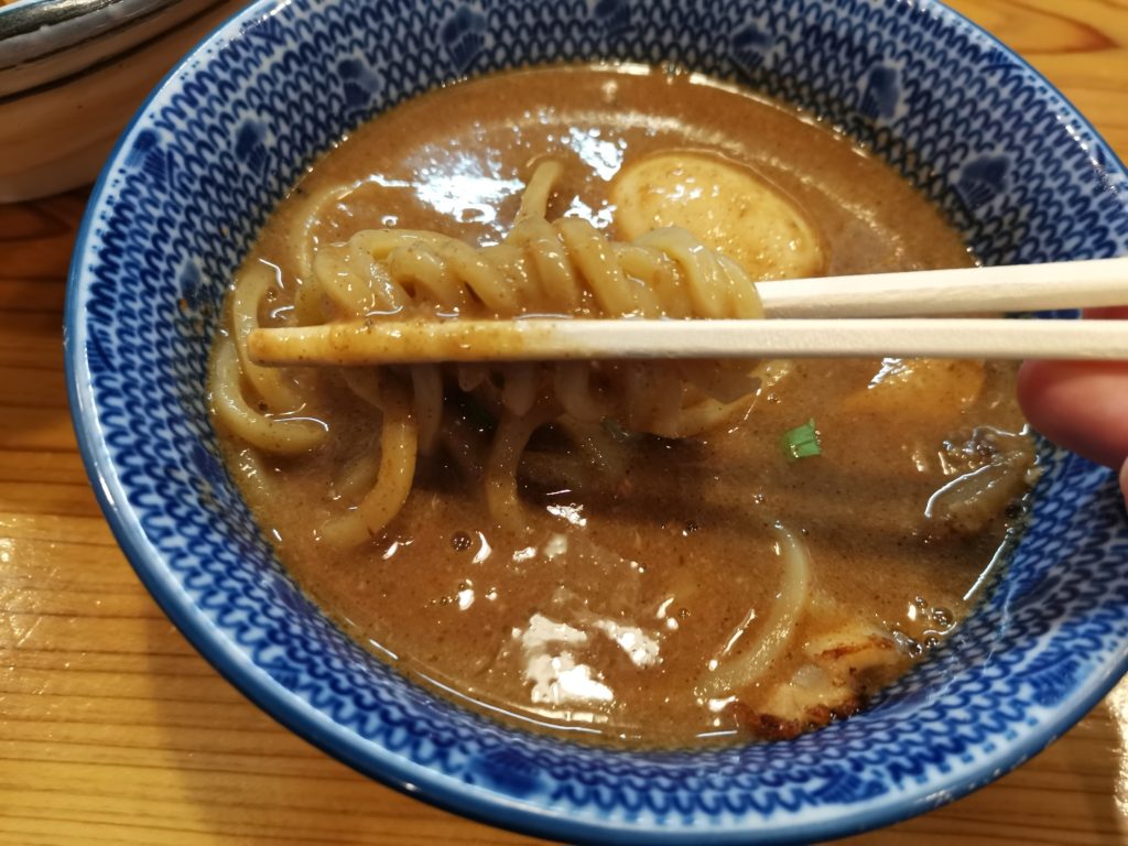 麺はモチモチとした食感が特徴で、スープとの相性もばっちりです。麺とスープの相性、スープと具材の相性、全てが絶妙にマッチして、至極の一杯でした。あまりの濃厚スープで、麺大盛りだと、スープは残りませんので、スープ割を楽しみたい方は並にするといいですよ(大盛りはちょっときつい…)。