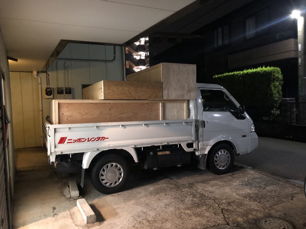 大きな事故もなく無事荷台に積みました。大型の作品なので作家だけで搬入するのって命懸けですね…。