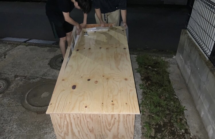 作品のサイズピッタリの木の箱を作って内側にウレタンを貼って運送中に動かないようにガッチリと作品を梱包してます。計算通り、作品を入れることが出来たようです。すごい精度ですね。