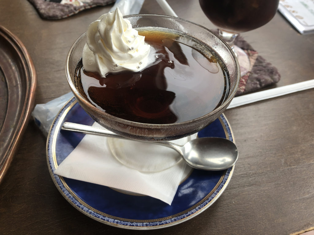 コーヒーゼリー。プルプルで上に水飴がかかっています。これも苦すぎず好みの味でした。