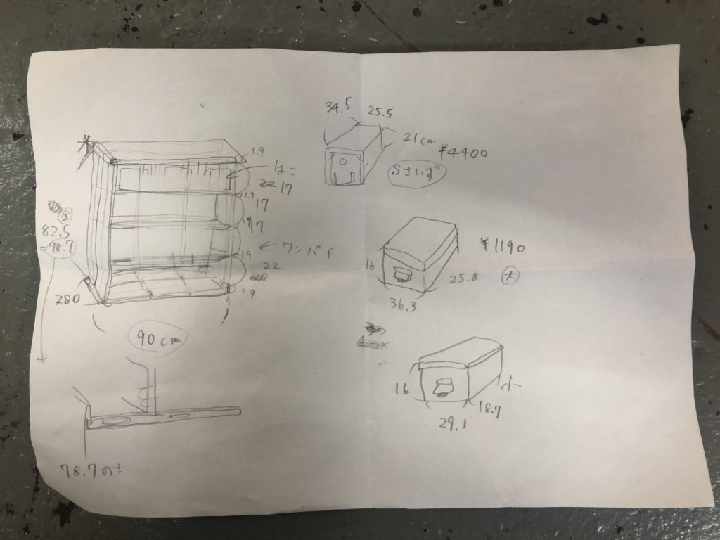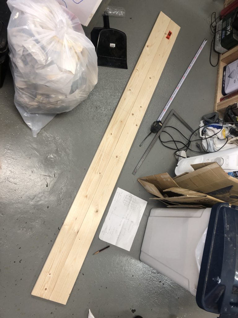 あとベニヤの天板も測ってカット。厚さは靴を乗せてもしならないくらいの厚さのやつです。