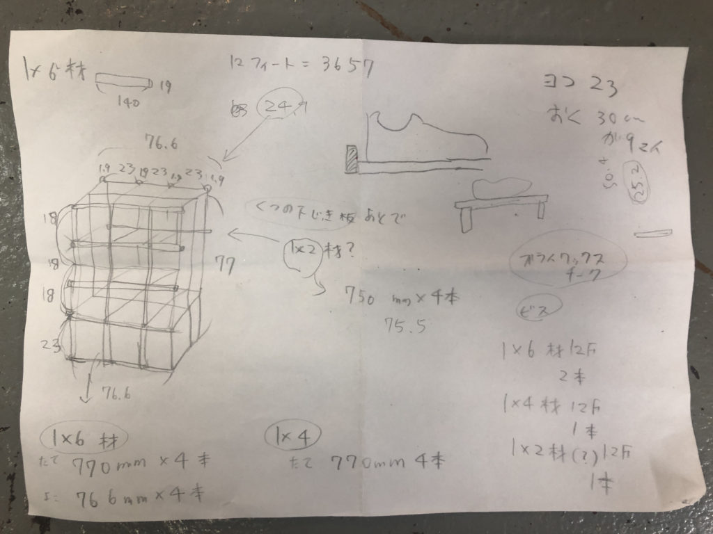 今日は制作関係なくDIYで遊びました。自宅の靴箱を制作しました。