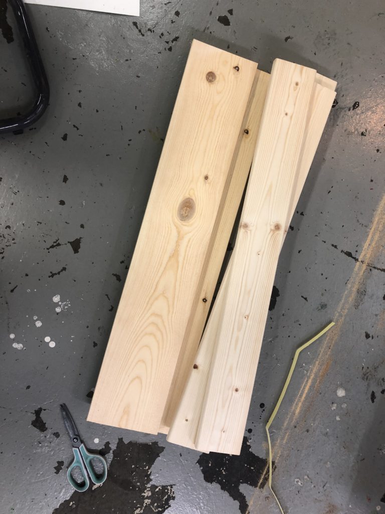 12フィートは買うの大変だったので6フィートにしました。ホワイトウッドっていう種類の木材です。ホワイトウッドは丈夫で表面もキレイ。流行りのツーバイフォーDIYの木材もほとんどホワイトウッドですね。ちょっと高いけど。