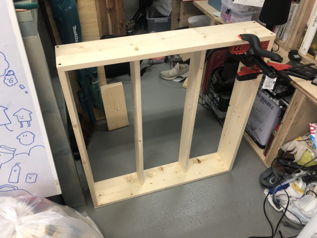 外枠は1×6材で真ん中は1×4材です。どんどん組み立てていきます。