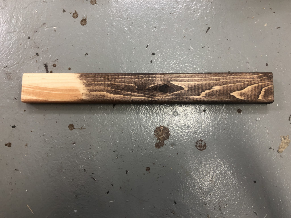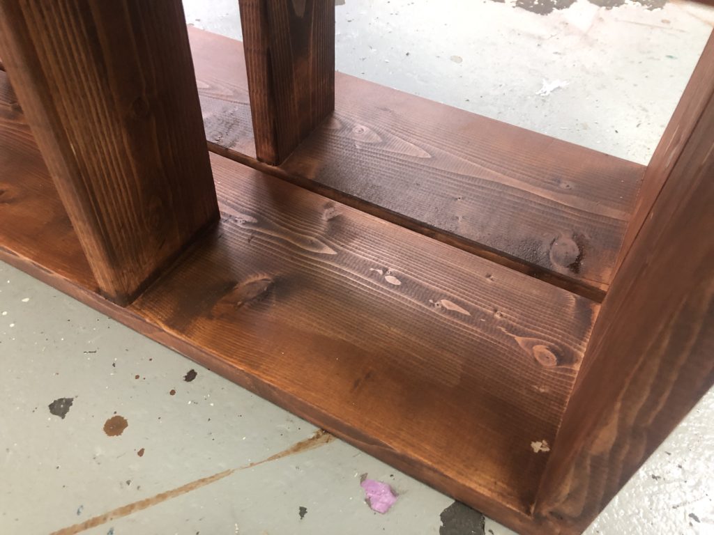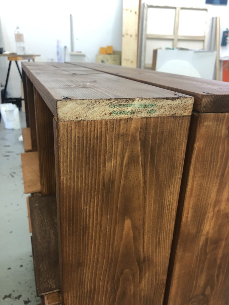 失敗点ですが木材カットのときに端っこにロゴがあったの見落としていてそのまま組み立てたらこんなことに…。ワックスもステインも弾く…しっかりやすらないと…。