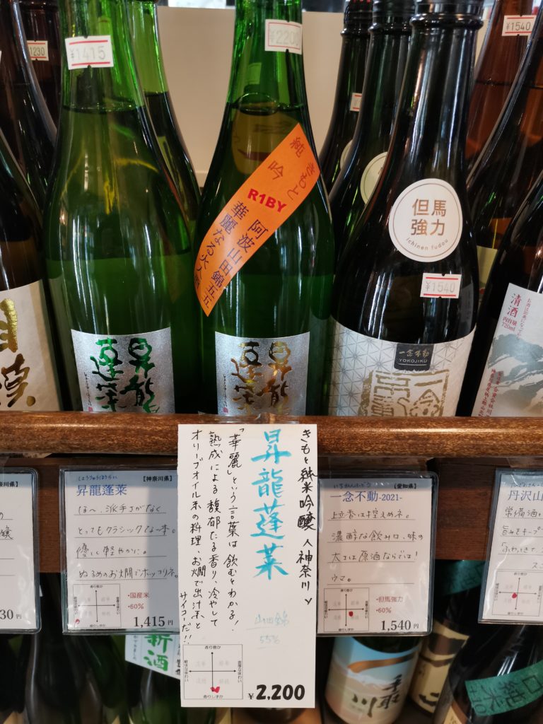 お店のオーナーの方も非常に人柄がよく、悩みに悩んで、昇龍蓬莱をレジに持って行ったら、「お燗はお好きなんですか?」と心の内を見抜かれ、膨らみのある美味しさがあることを丁寧に教えてもらいました。銘柄も豊富な良いお店なので日本酒好きは是非行ってみてはいかがでしょうか。