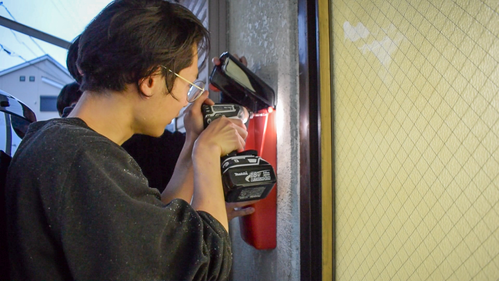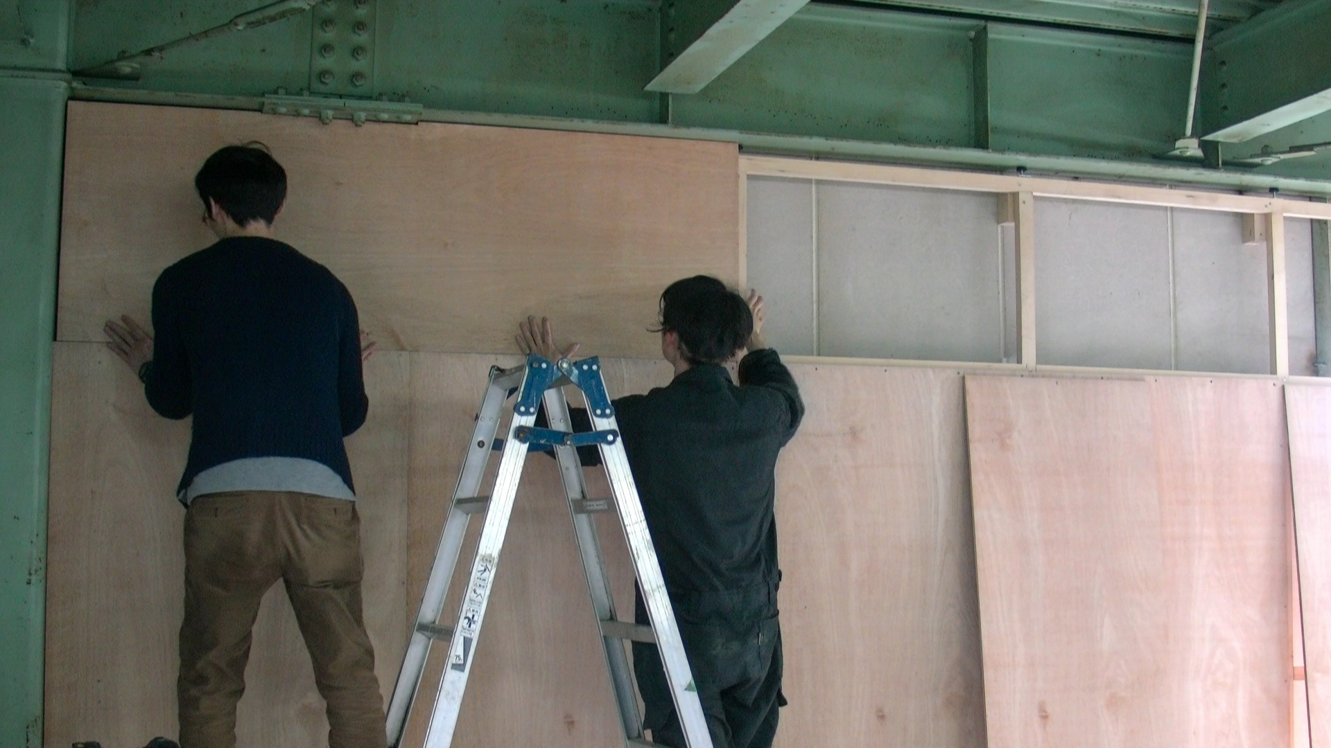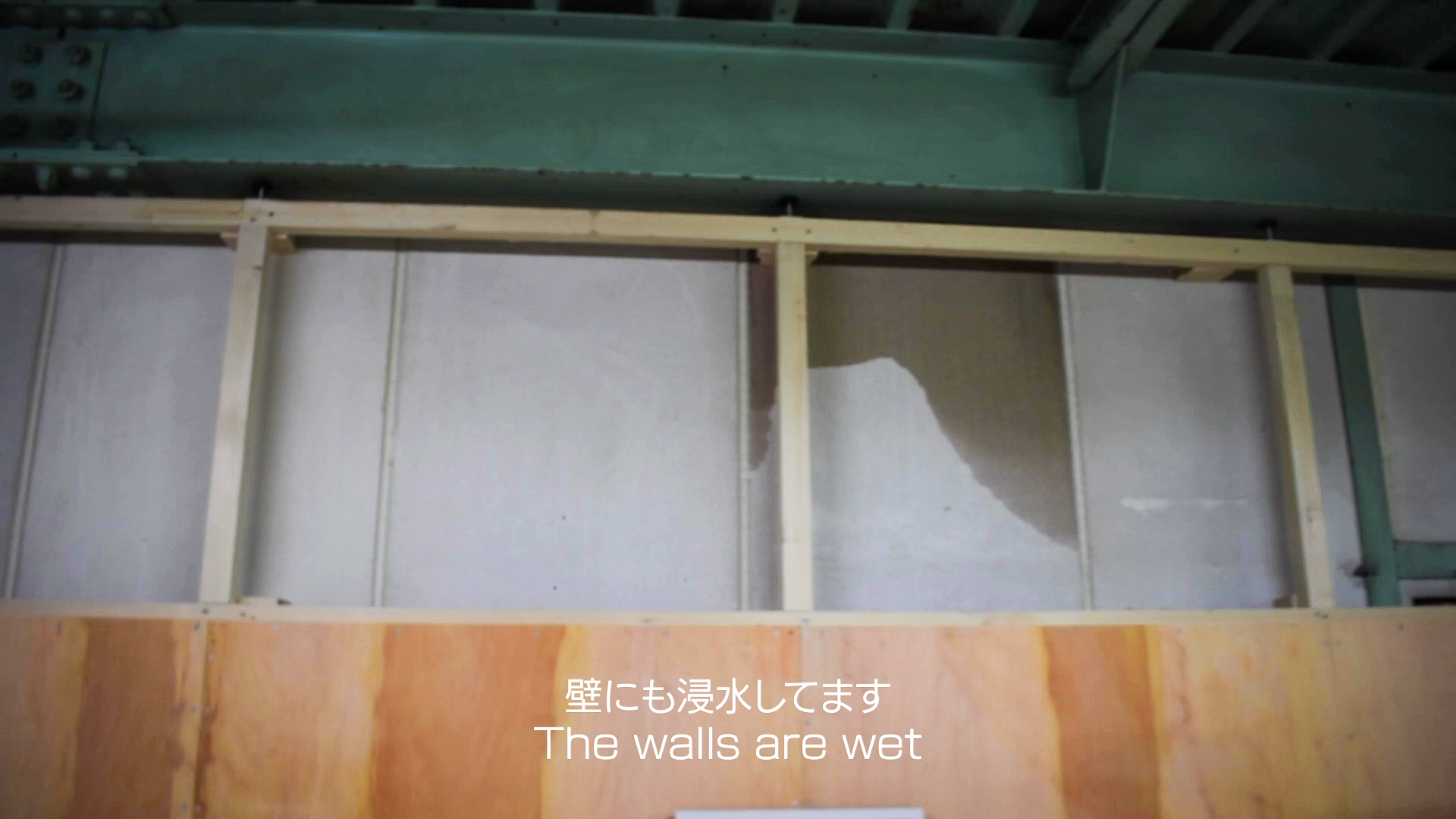 ガラス製の引き戸があり、当初使う予定でしたが浸水してきてしまうため、はめ殺し窓にして開かなくなっています。